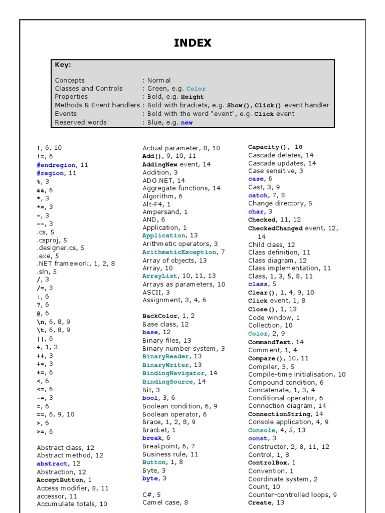 Shift-F5, 1, 7 TabIndex, 14 Verbatim string literal, 6
