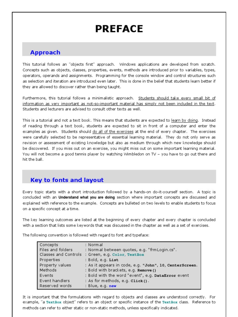 This tutorial follows an "objects first" approach. Windows applications are developed from scratch.