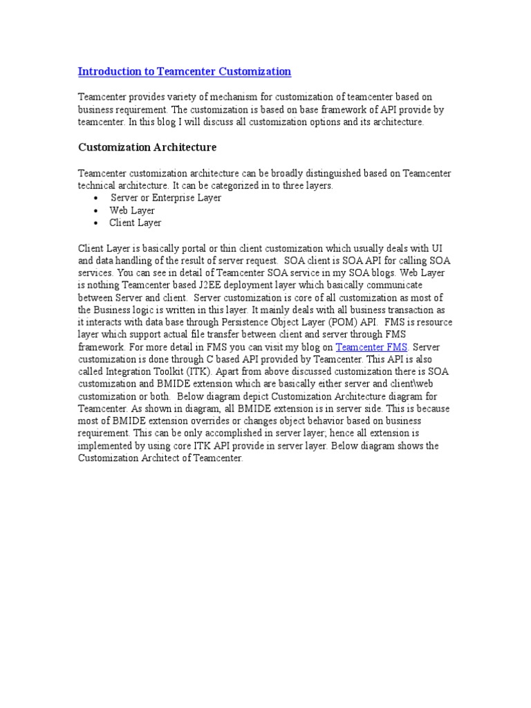 teamcenter. In this blog I will discuss all customization options and its architecture.