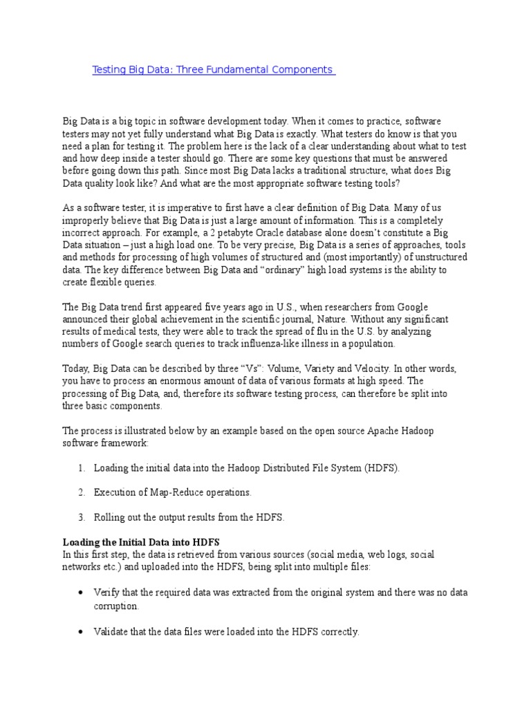 right test strategies and follow best practices, you will improve Big Data testing quality, which