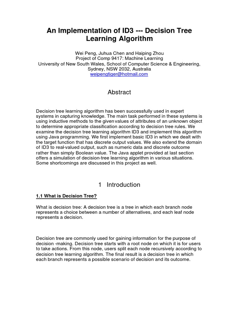 examine the decision tree learning algorithm ID3 and implement this algorithm