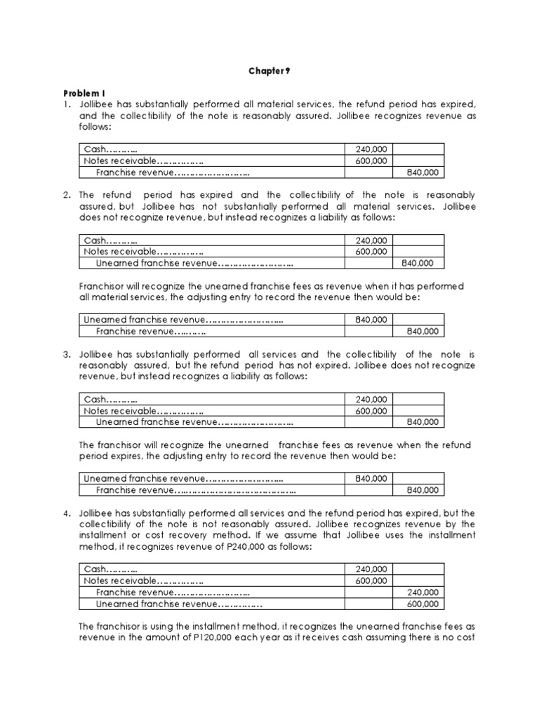 collectibility of the note is not reasonably assured. Jollibee recognizes revenue by the