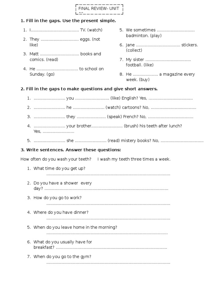 1. ......................... you ........................... (like) English? Yes, ...................................