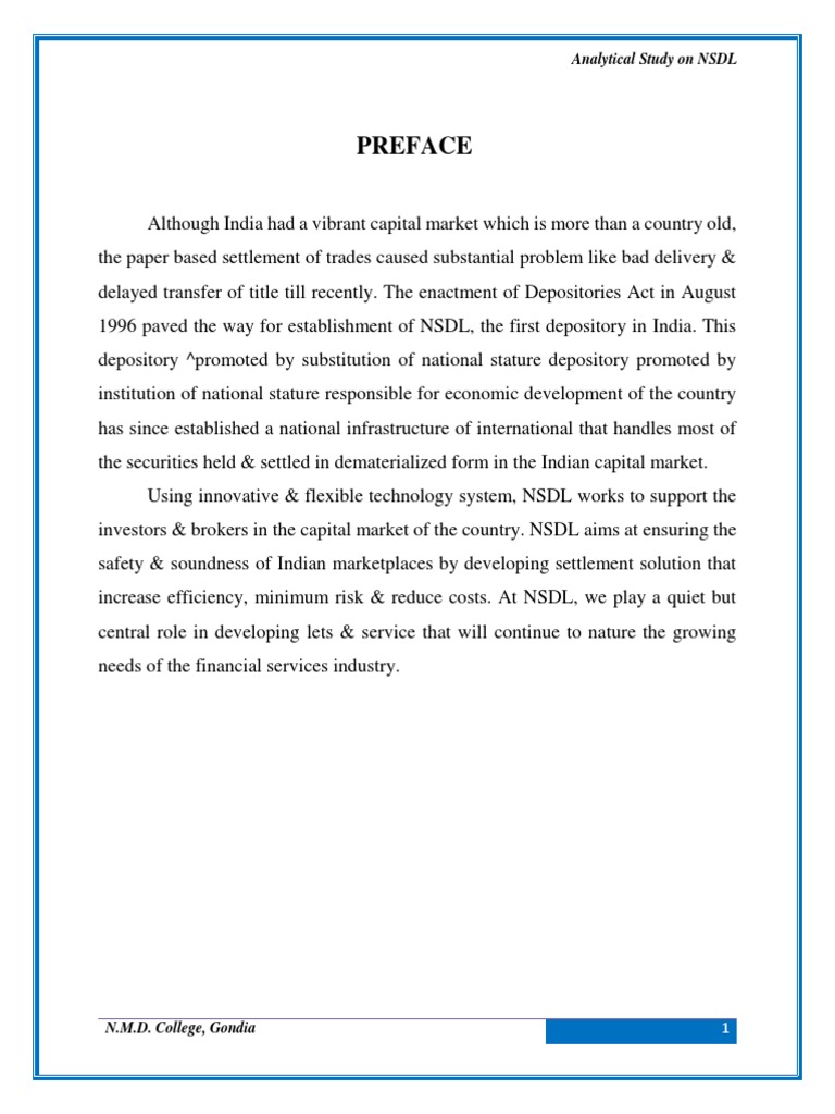 5) I have also concluded that It is very vast concept, the study of NSDL is