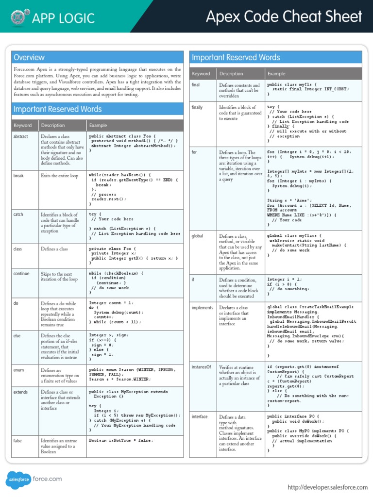 Apex Code Cheat Sheet
