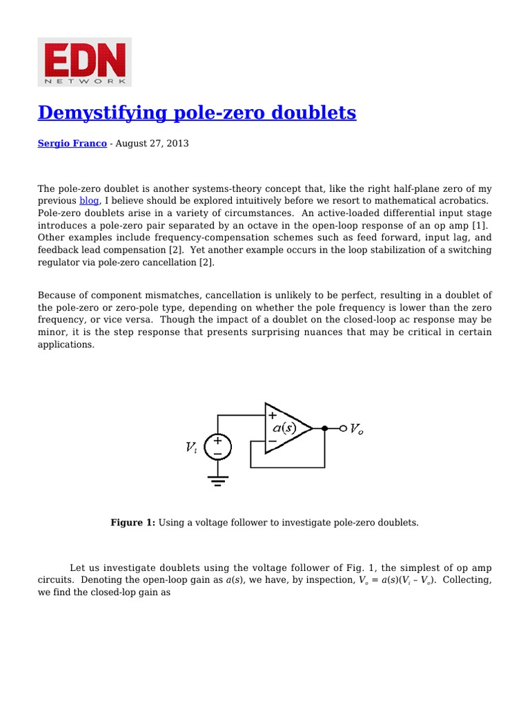introduces a pole-zero pair separated by an octave in the open-loop response of an op amp [1].
