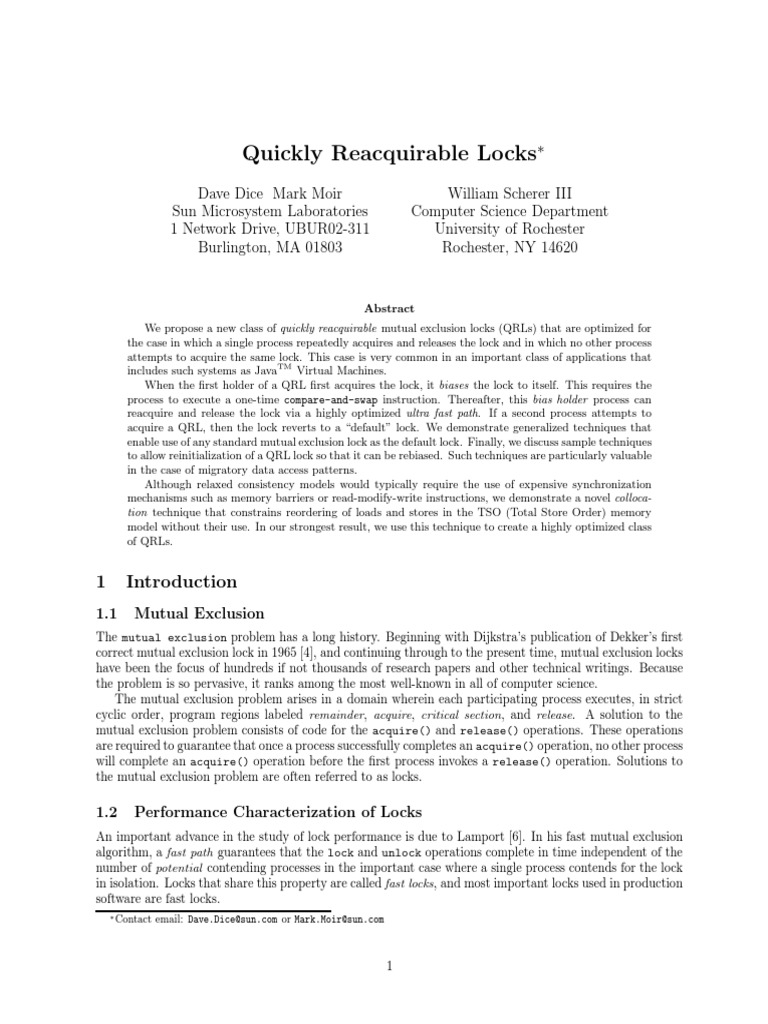 optimized. We shall refer to locks optimized for this case henceforth as quickly reacquirable locks (QRLs).