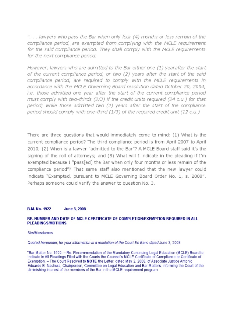 indicate Exempted, pursuant to MCLE Governing Board Order No. 1, s. 2008.