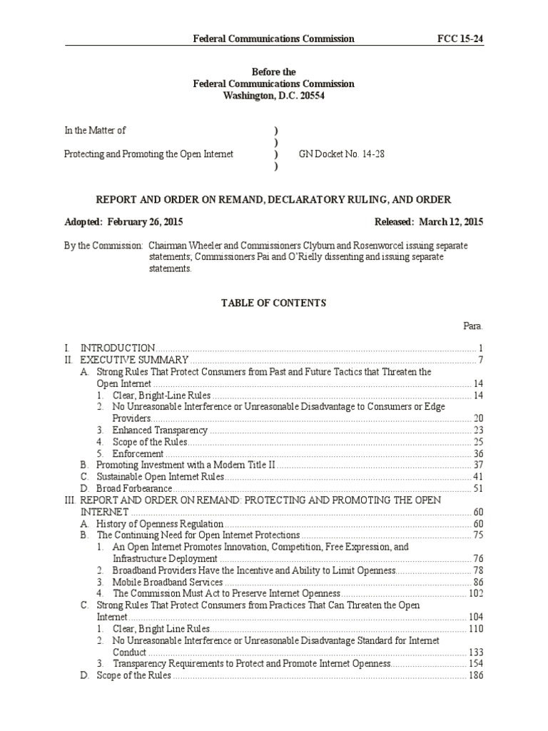 III. REPORT AND ORDER ON REMAND: PROTECTING AND PROMOTING THE OPEN