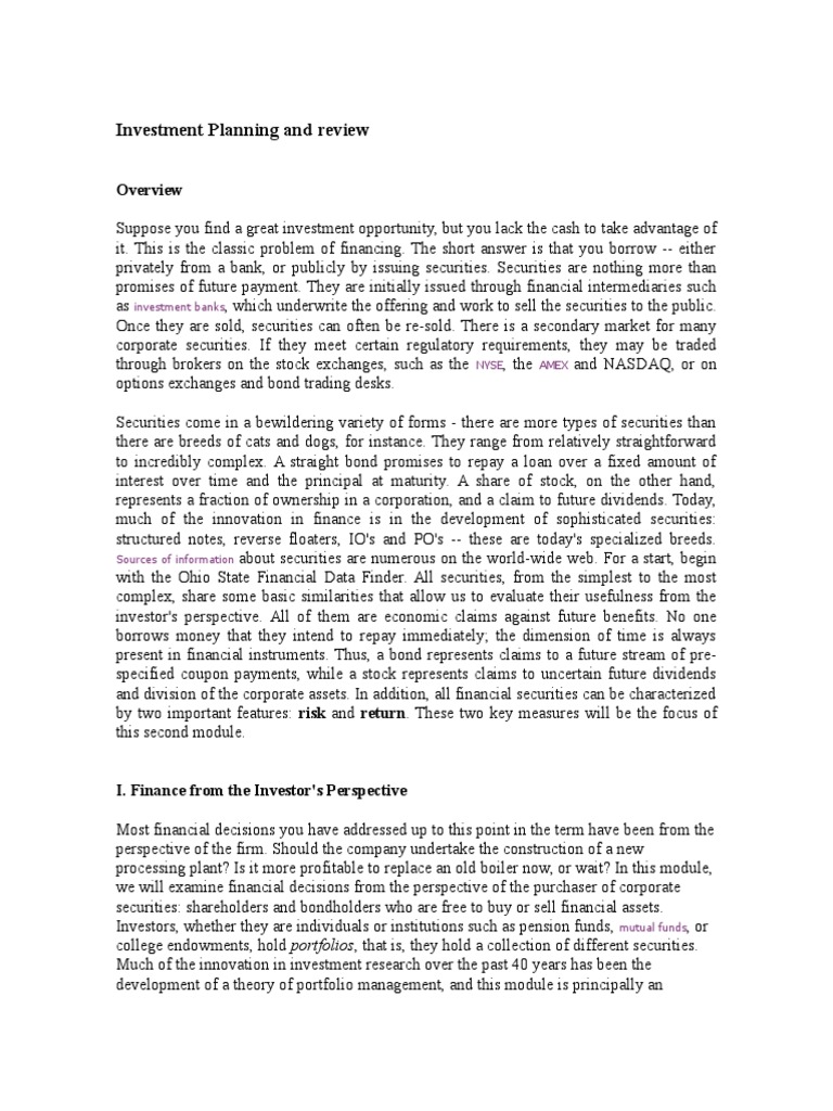 I. Finance from the Investor's Perspective