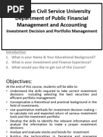 development of a theory of portfolio management, and this module is principally an
