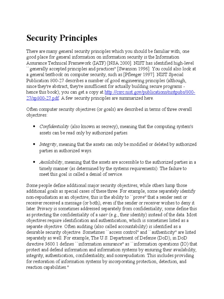 since they're abstract, they're insufficient for actually building secure programs hence this book); you can get a copy at http://csrc.nist.gov/publications/nistpubs/80027/sp800-27.pdf. A few security principles are summarized here.