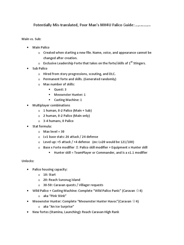 Potentially Mis-translated, Poor Mans MH4U Palico Guide: