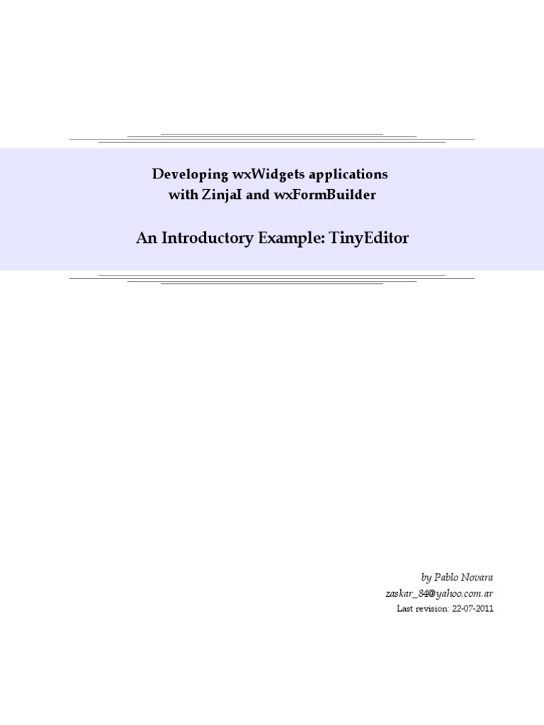tools (ZinjaI, wxWidgets, and wxFormBuilder) and read just the key steps (text in blue) ignoring
