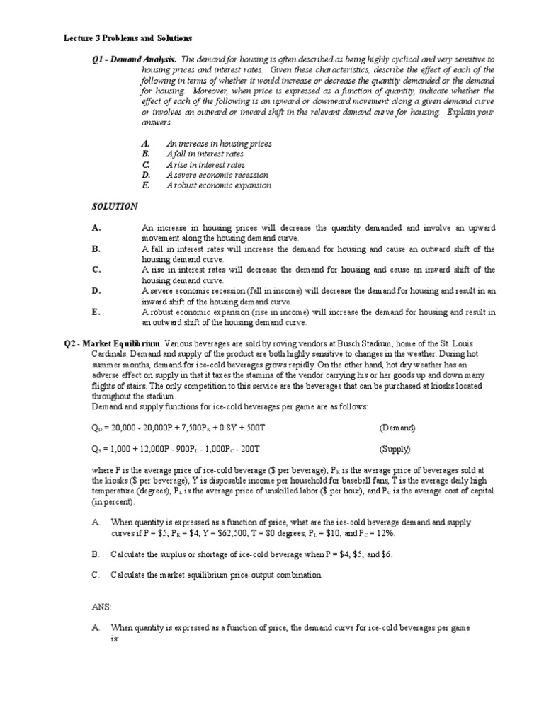 for housing. Moreover, when price is expressed as a function of quantity, indicate whether the