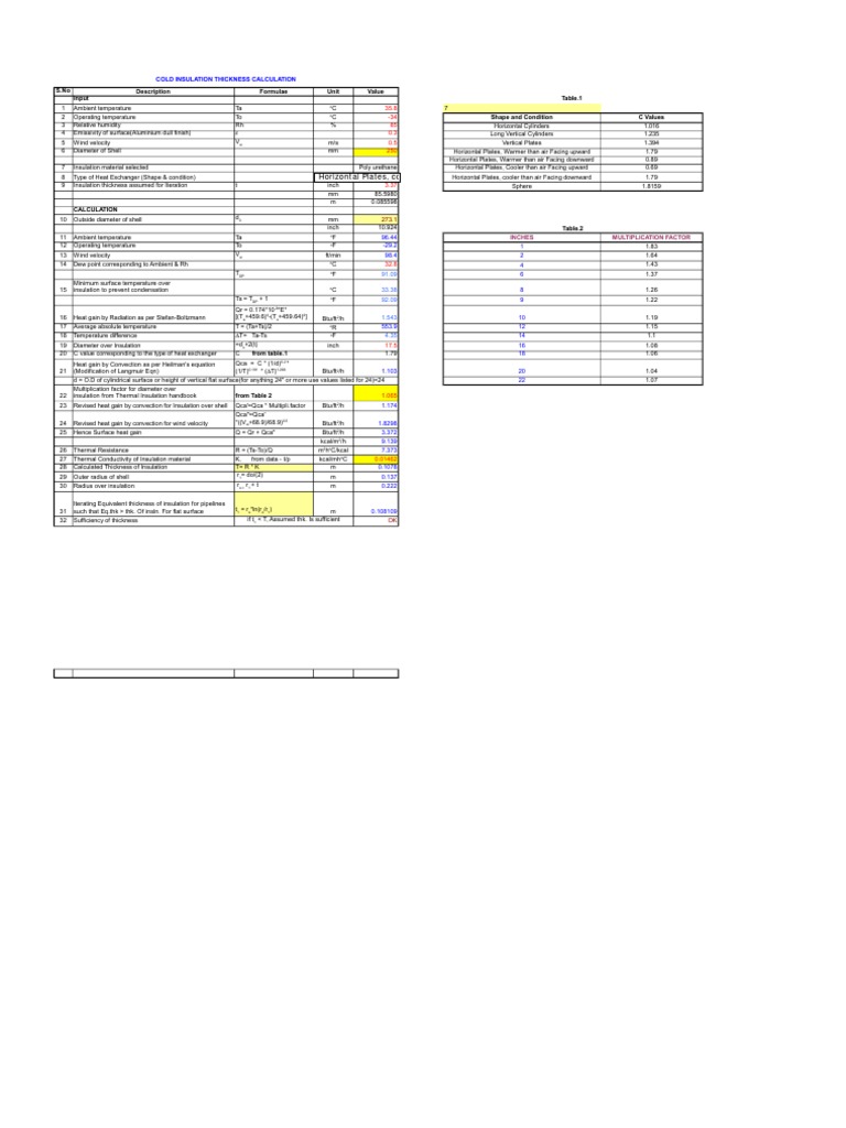 COLD INSULATION THICKNESS CALCULATION