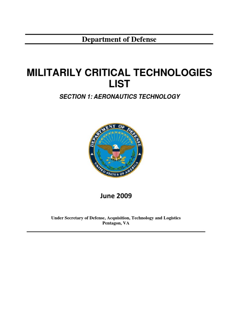 technologies and weapons systems. It established the requirement for DoD to compile a list of militarily critical