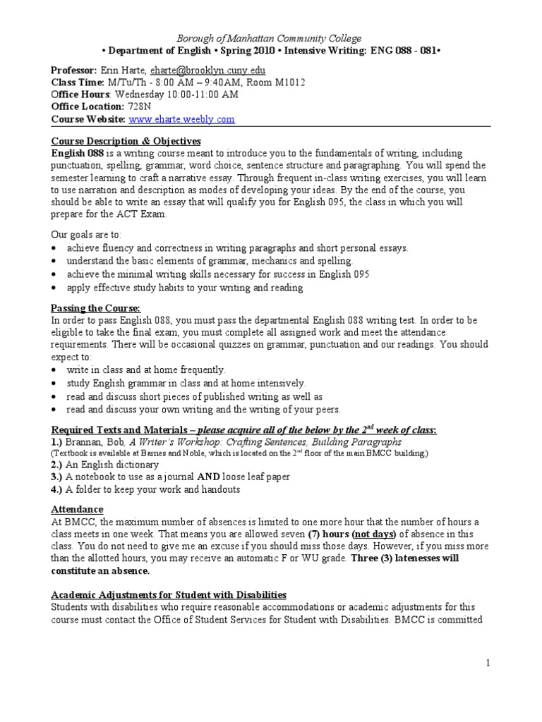 • Department of English • Spring 2010 • Intensive Writing: ENG 088 - 081•