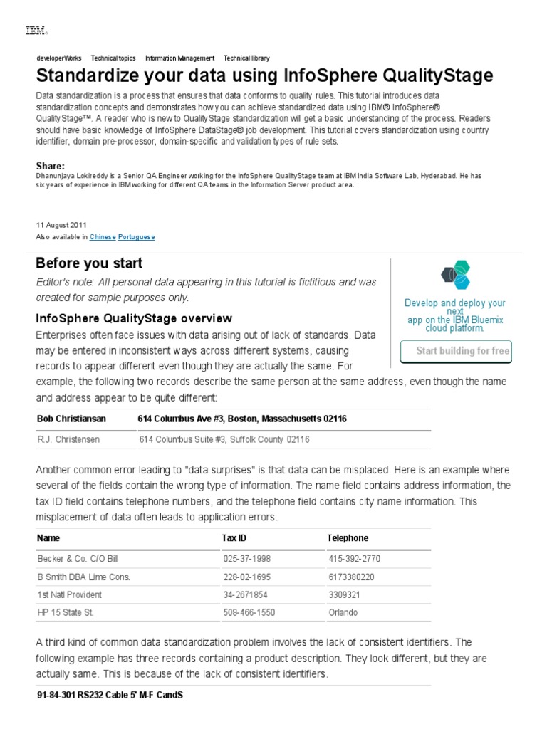standardization concepts and demonstrates how you can achieve standardized data using IBM InfoSphere