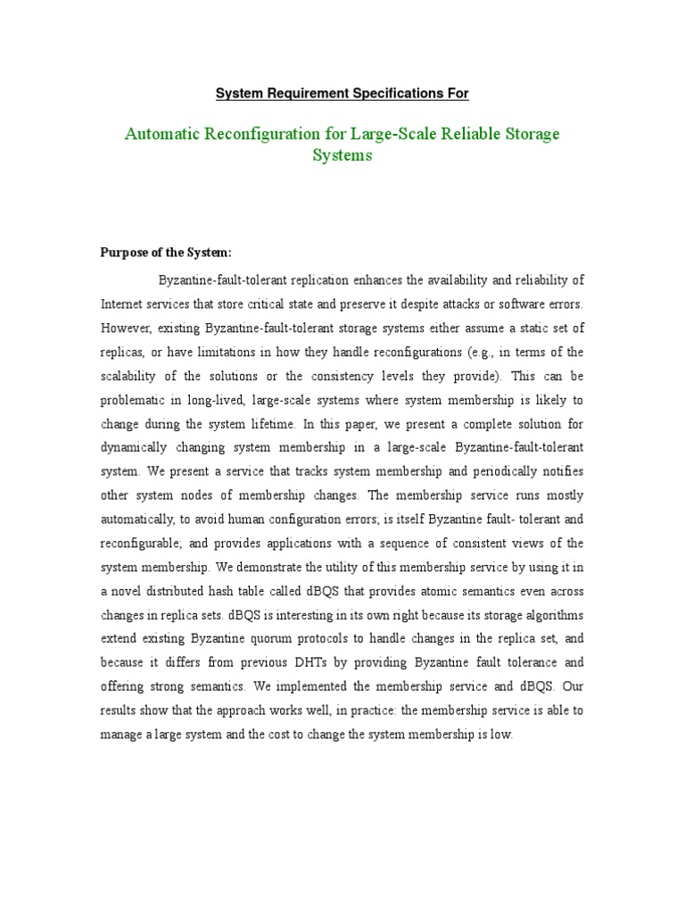 automatically, to avoid human configuration errors; is itself Byzantine fault- tolerant and