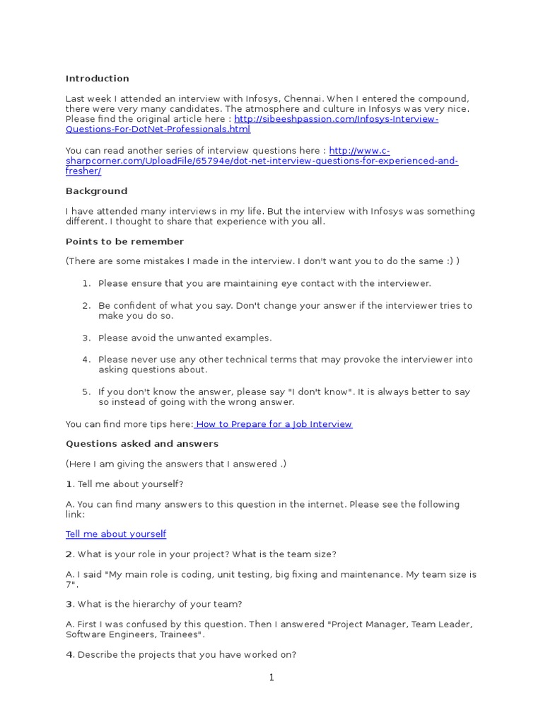 Please find the original article here : http://sibeeshpassion.com/Infosys-InterviewQuestions-For-DotNet-Professionals.html