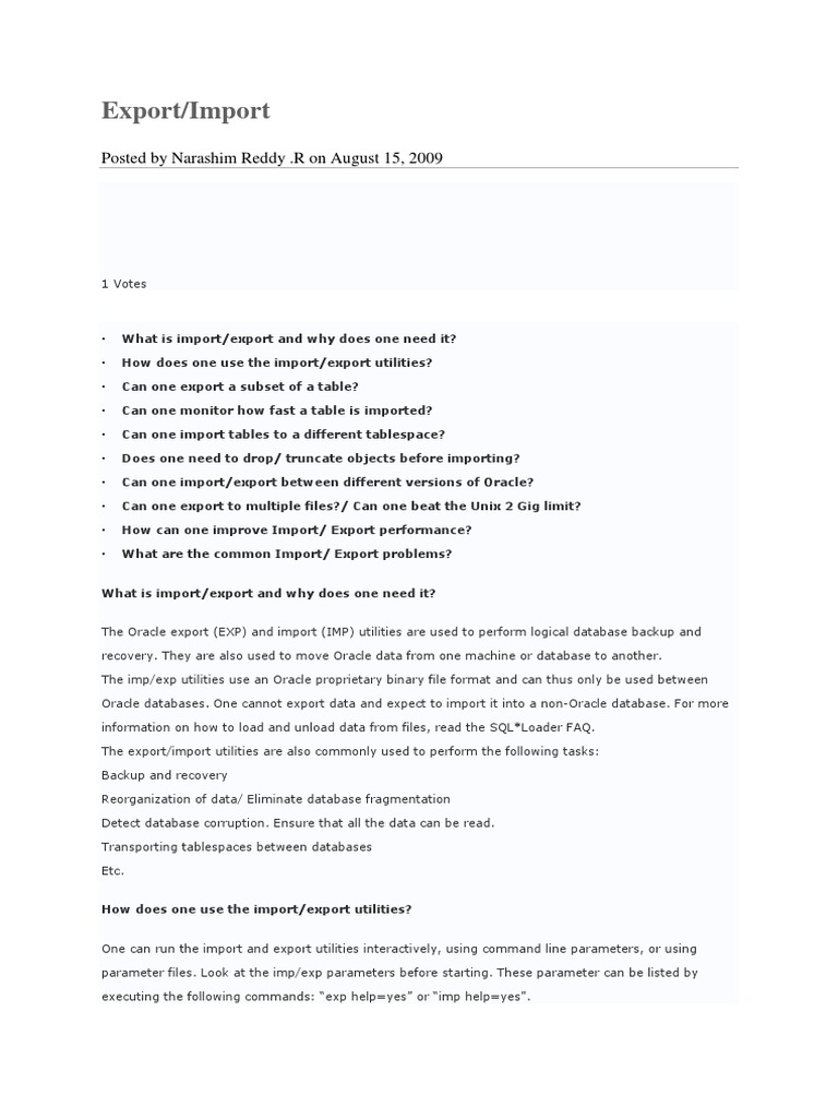 How does one use the import/export utilities?