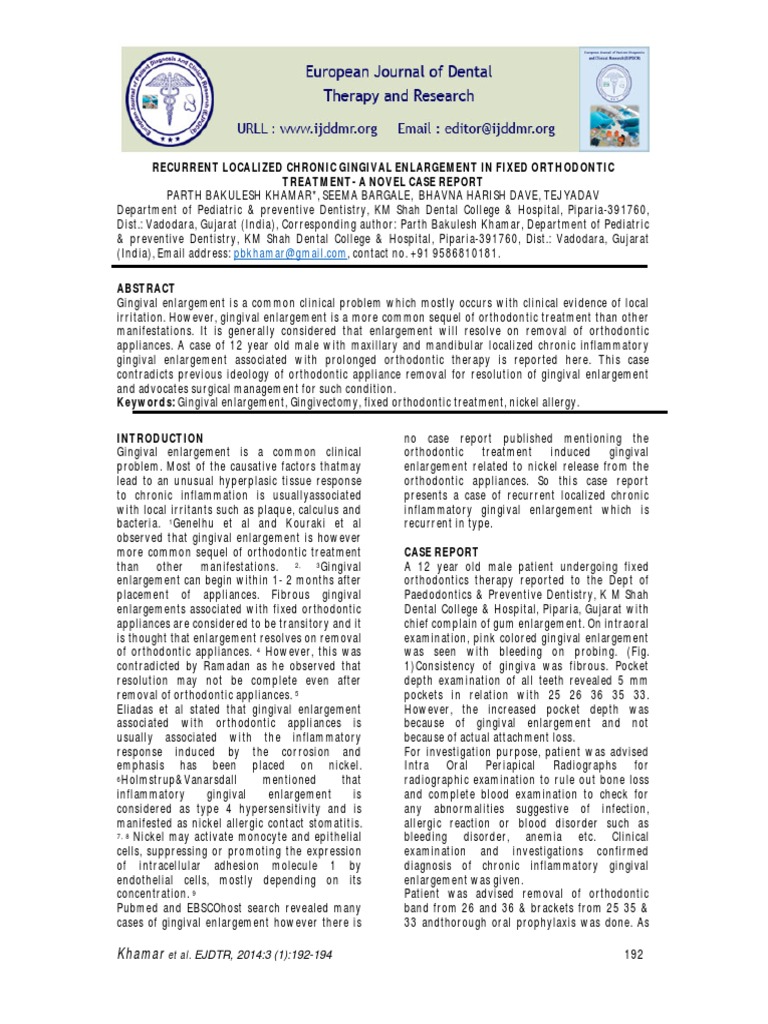 Khamar et al. EJDTR, 2014:3 (1):192-194