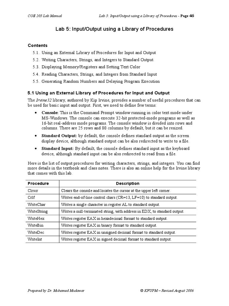 Lab 5: Input/Output using a Library of Procedures - Page 46