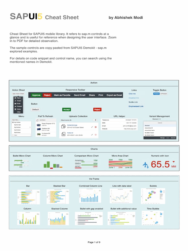 0 ratings0% found this document useful (0 votes) 1K views9 pagesSAPUI5 Controls Cheat Sheet PDF