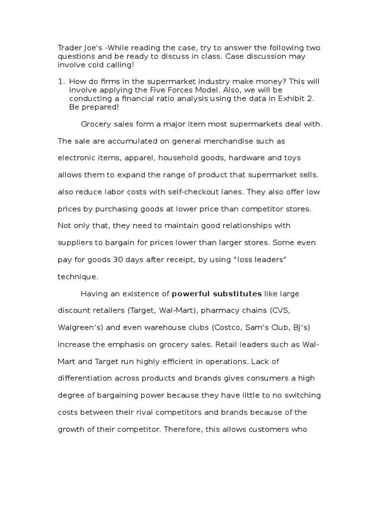 increase the emphasis on grocery sales. Retail leaders such as WalMart and Target run highly efficient in operations. Lack of