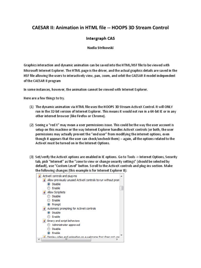 (1) The dynamic animation via HTML file uses the HOOPS 3D Stream ActiveX Control. It will ONLY