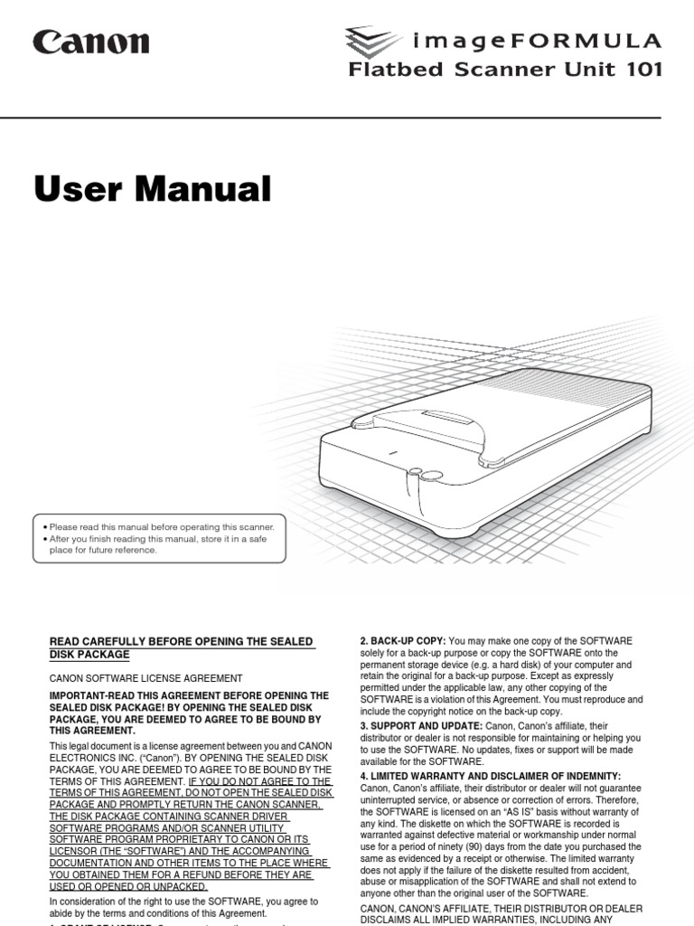 PACKAGE AND PROMPTLY RETURN THE CANON SCANNER,