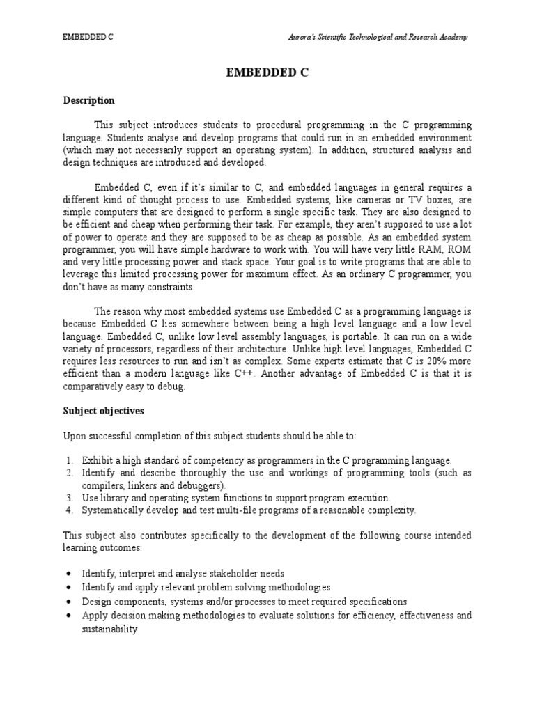 efficient than a modern language like C++. Another advantage of Embedded C is that it is