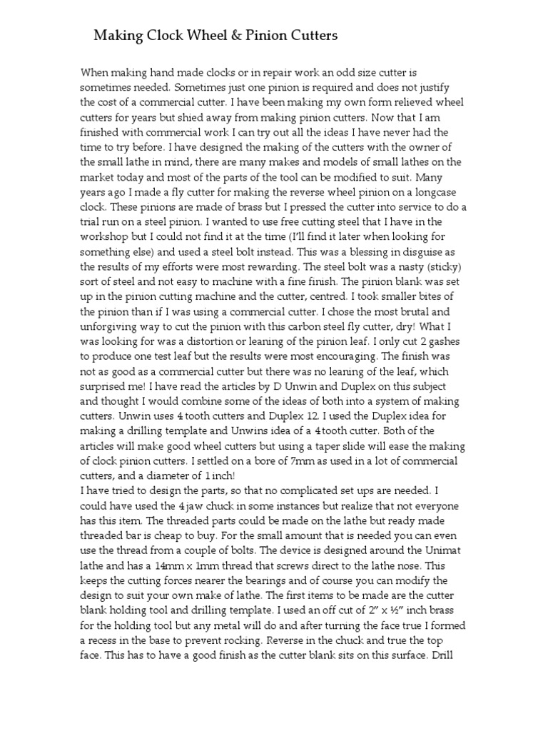 of clock pinion cutters. I settled on a bore of 7mm as used in a lot of commercial
