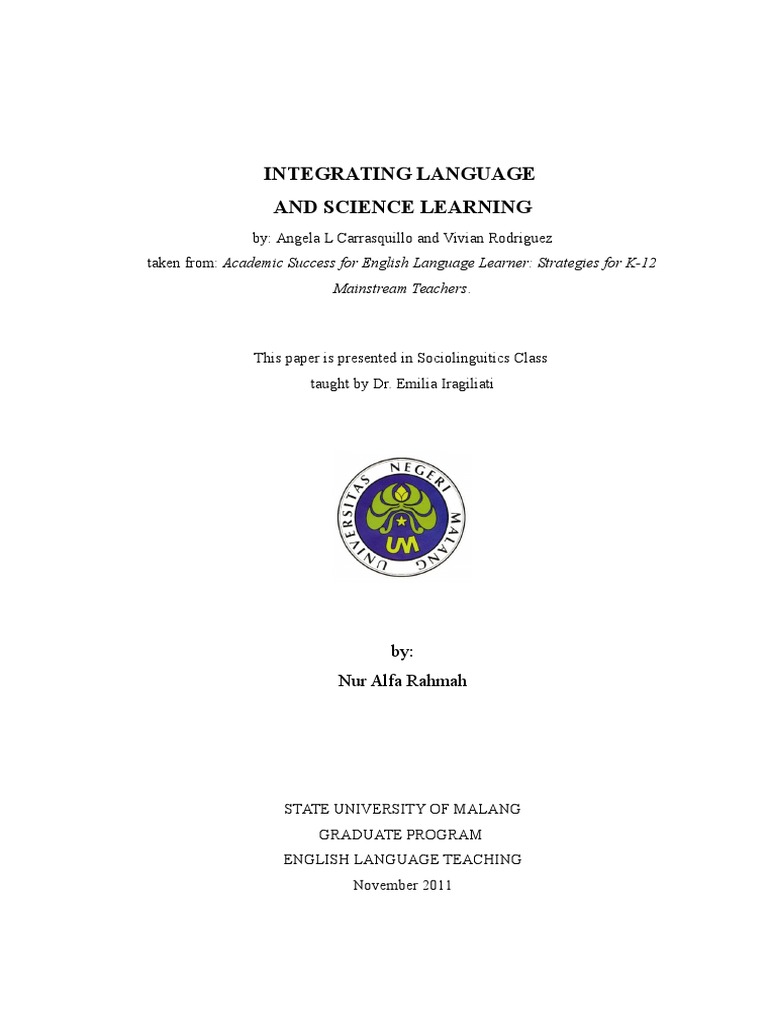 The teaching of science in English language learning classroom is, of