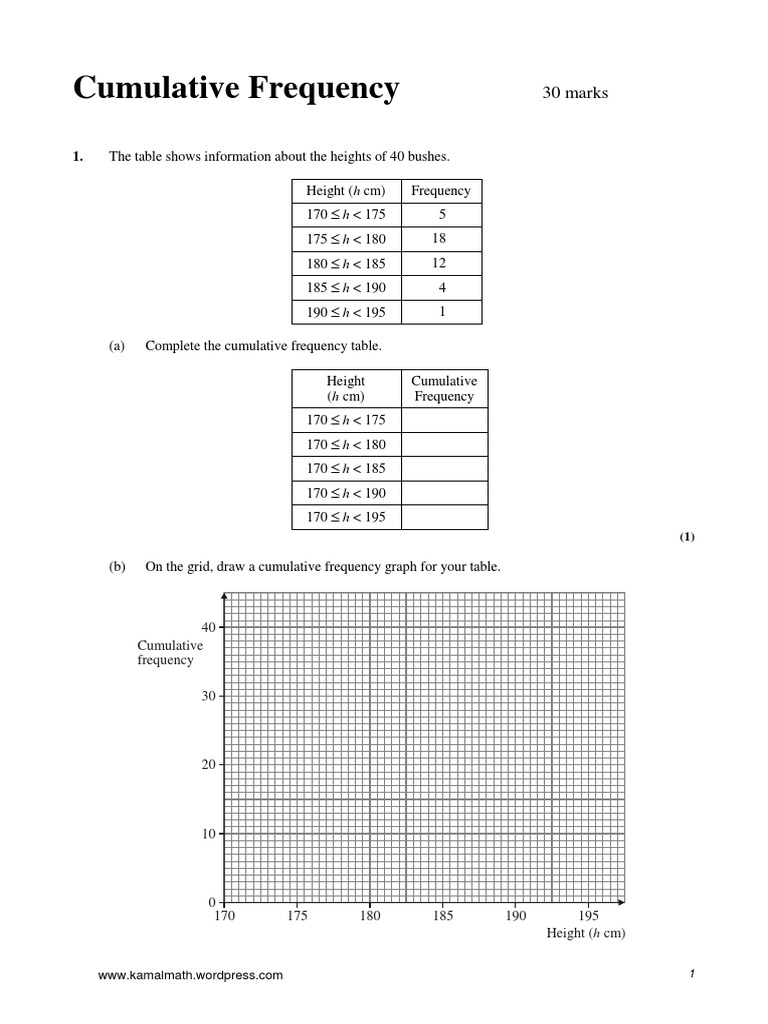 On the same grid, draw the cumulative frequency graph for the information shown in the