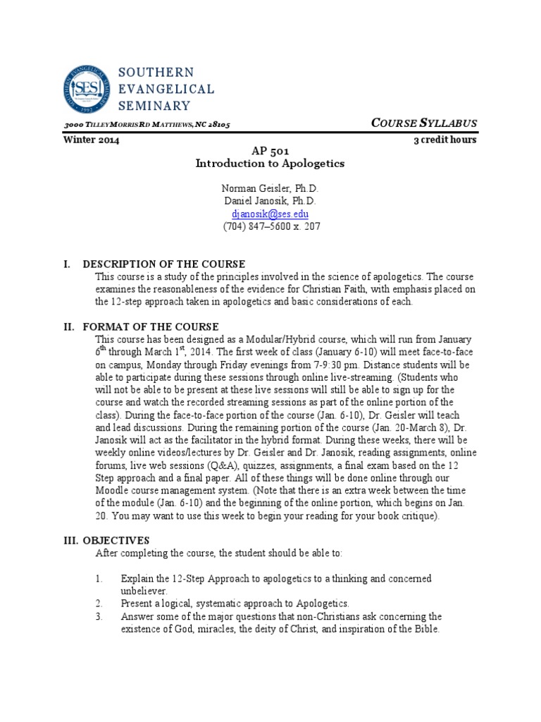 class). During the face-to-face portion of the course (Jan. 6-10), Dr. Geisler will teach