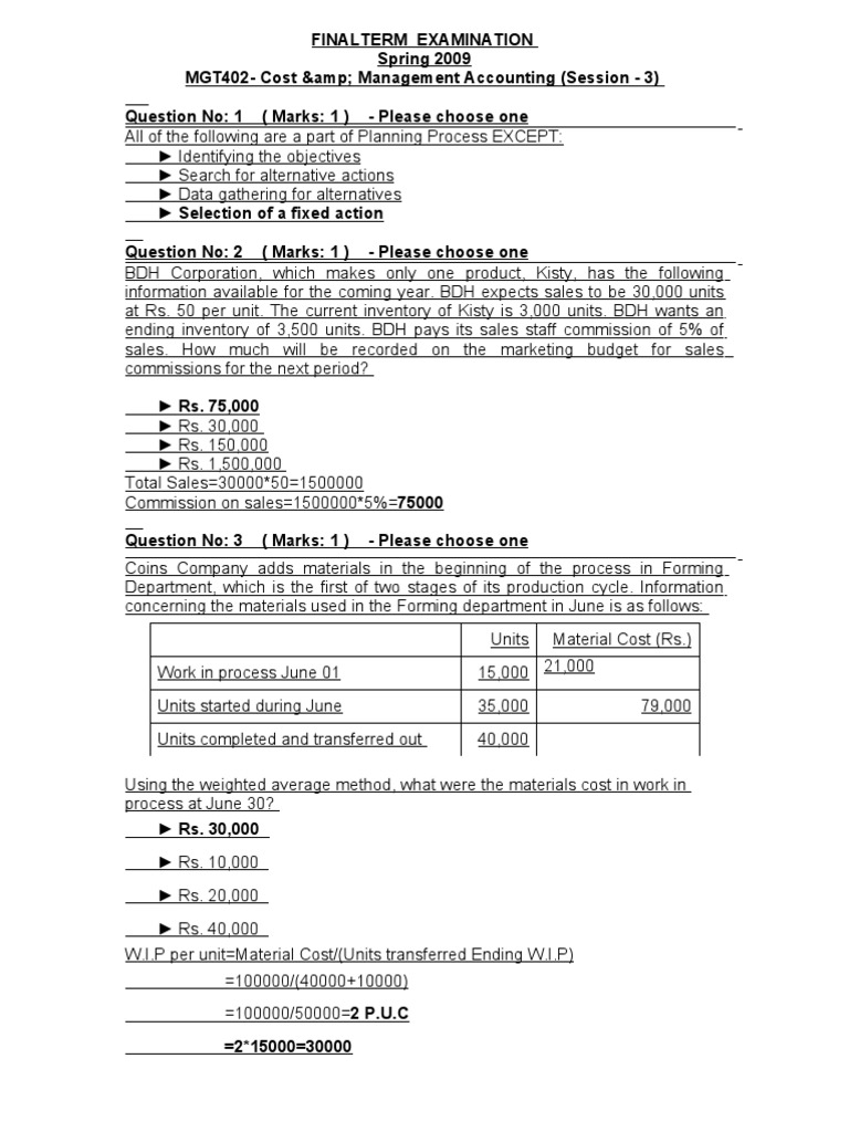 ending inventory of 3,500 units. BDH pays its sales staff commission of 5% of