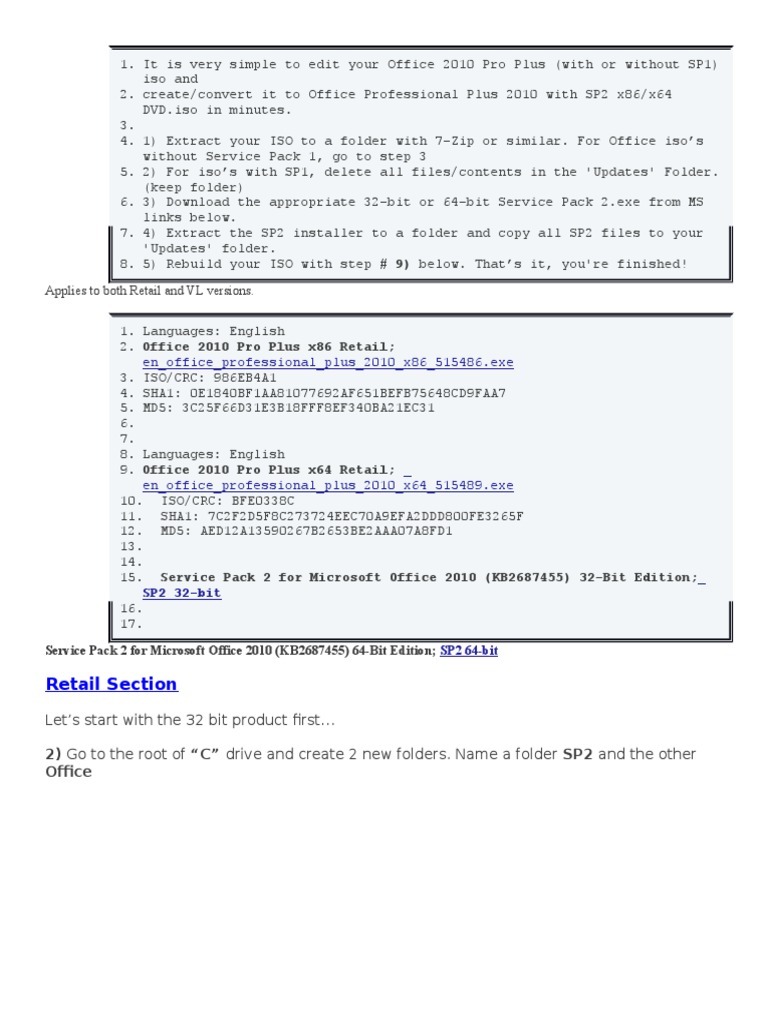 Office 2010 installer and the x64 SP2 installer to create your Office 2010 Pro