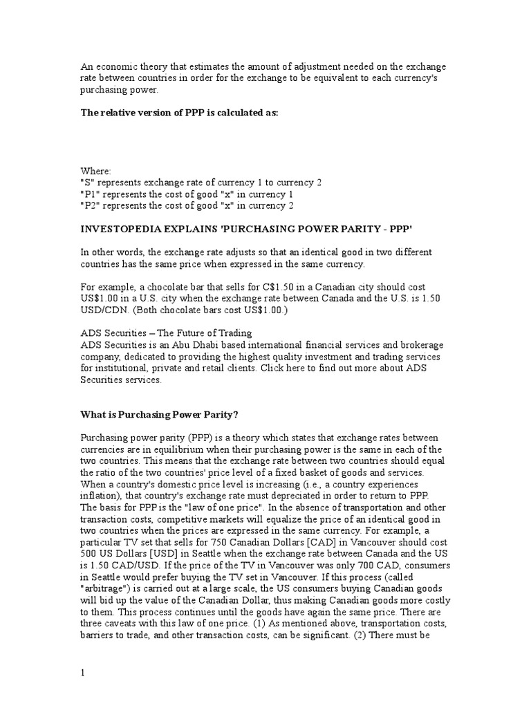 INVESTOPEDIA EXPLAINS 'PURCHASING POWER PARITY - PPP'