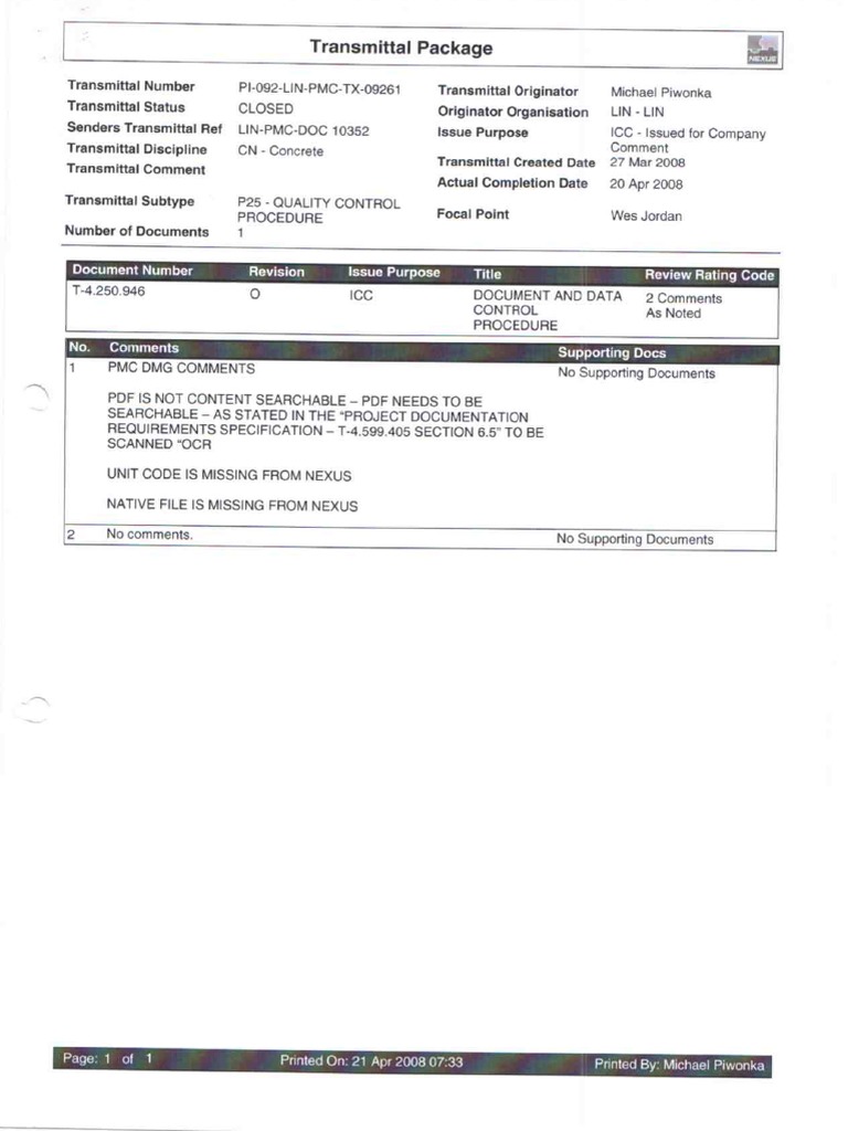 Transmittal No. (leti Nosu): GQA-LQA-TM-NNNN