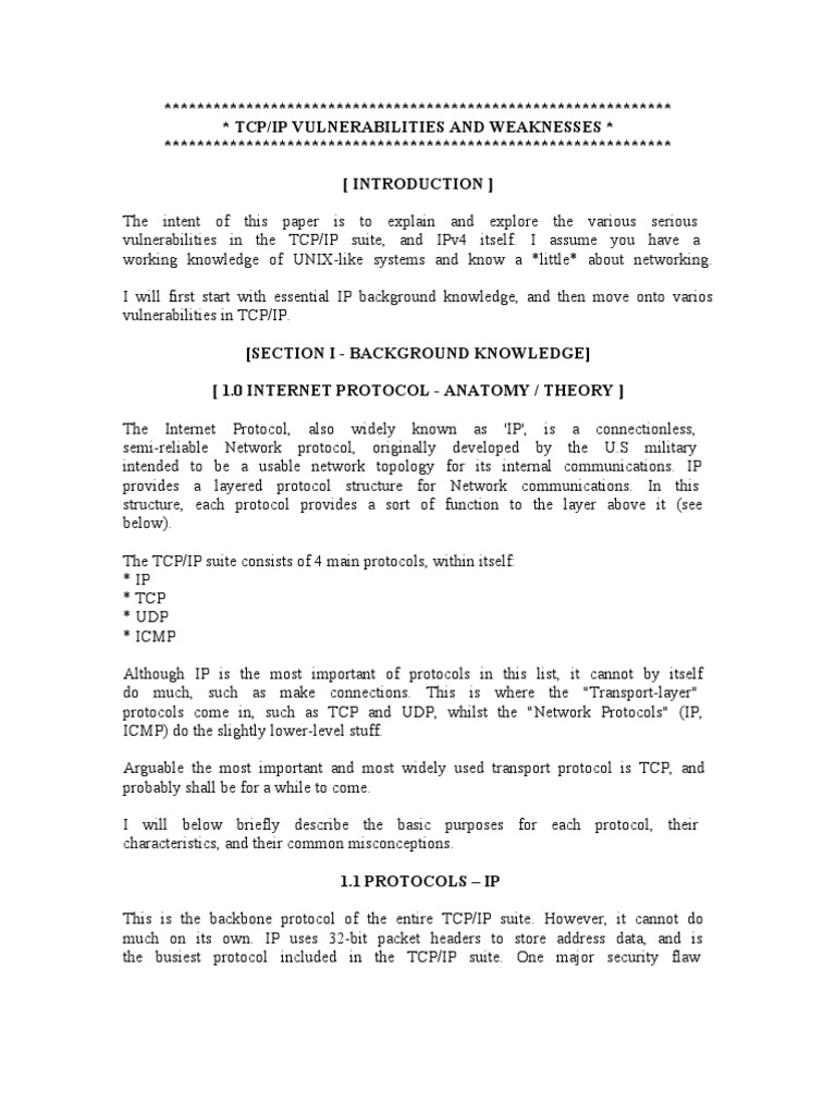 vulnerabilities in the TCP/IP suite, and IPv4 itself. I assume you have a