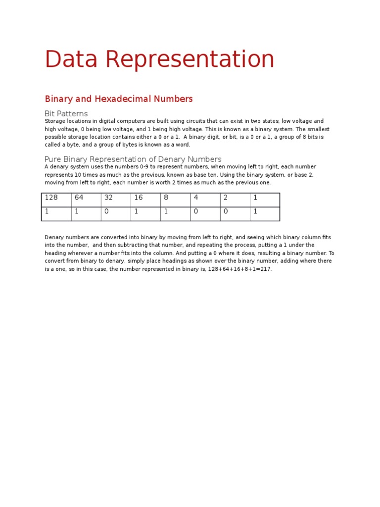 The Concept of Number Bases: Denary, Binary and Hexadecimal