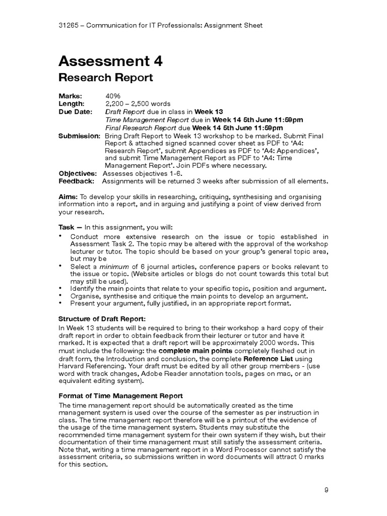 marked. It is expected that a draft report will be approximately 2000 words. This