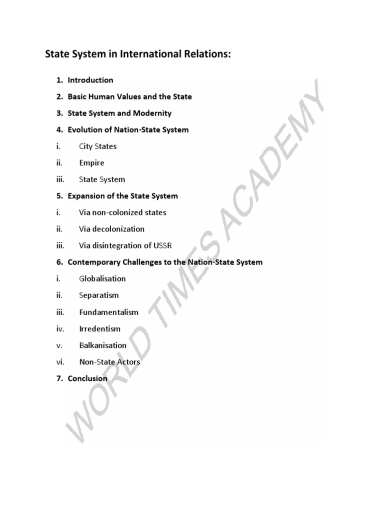 It is a pattern of political life in which people are separately organized into sovereign states that interact