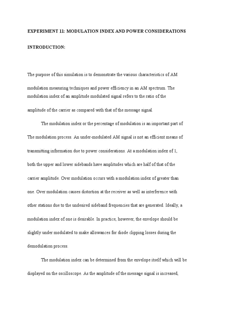 EXPERIMENT 11: MODULATION INDEX AND POWER CONSIDERATIONS