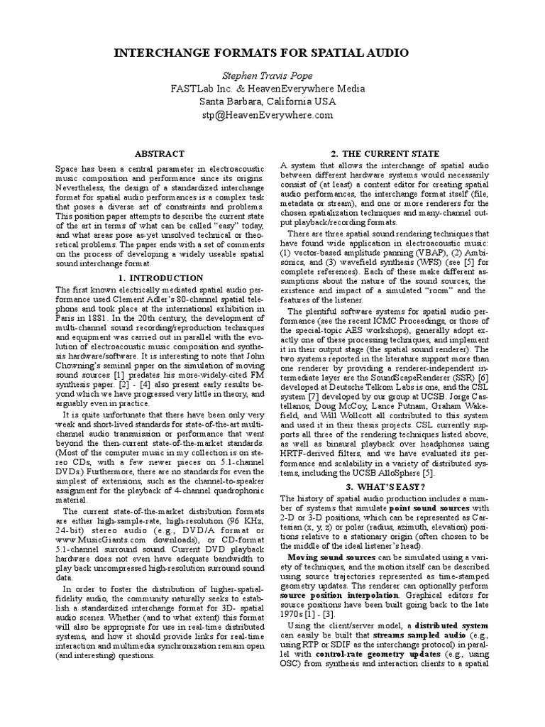 In order to foster the distribution of higher-spatialfidelity audio, the community naturally seeks to establish a standardized interchange format for 3D- spatial