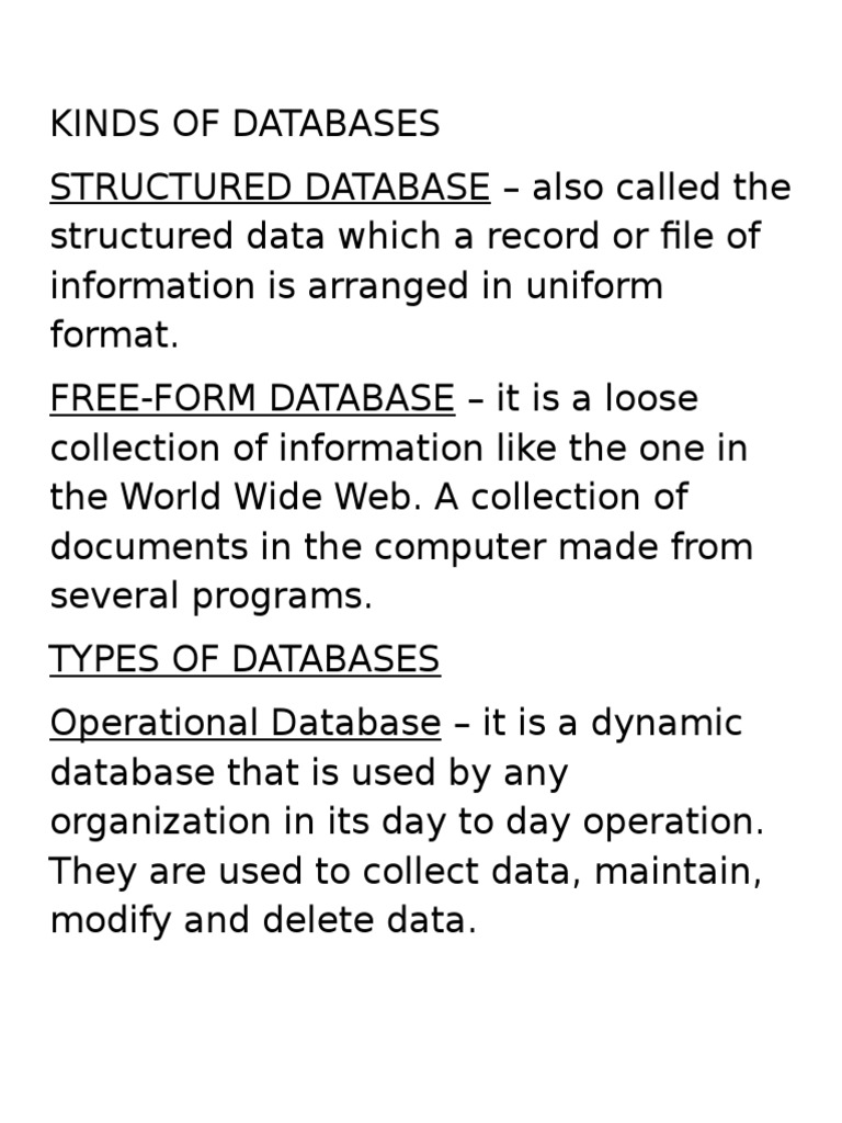 KINDS OF DATABASES