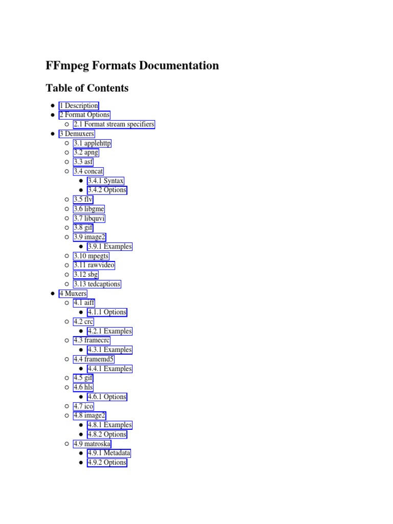 demuxers. In addition each muxer or demuxer may support so-called private options, which are specific