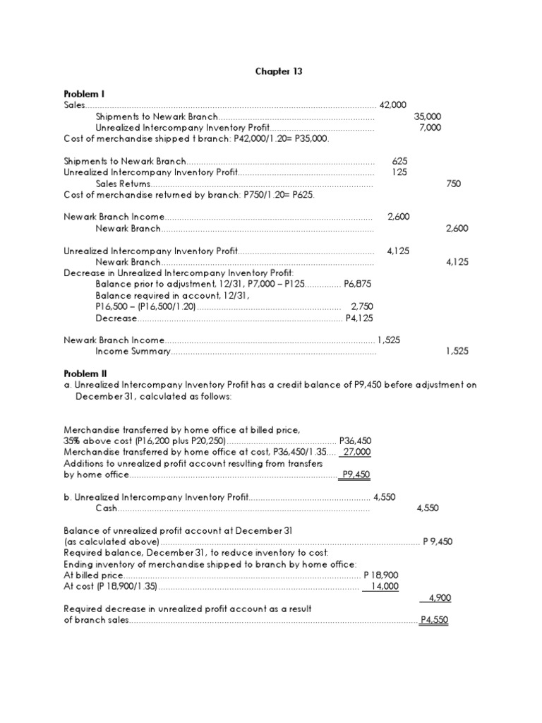 shipments to branch (20% x P8,000)............................................................................. 1,600